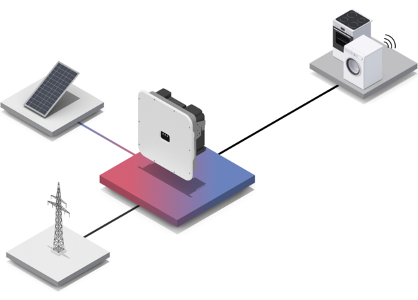 Cada sistema fotovoltaico precisa de pelo menos um inversor. Ao passo que a rede pública elétrica fornece corrente alternada (CA), e a maioria dos aparelhos domésticos e máquinas funcionam com corrente alternada, os módulos solares produzem corrente contínua (CC) sobre o telhado. Para o uso diário, essa corrente precisa primeiramente ser convertida em corrente alternada (CA). Caso contrário não é possível utilizar a energia de produção própria, nem a injetar na rede elétrica pública.